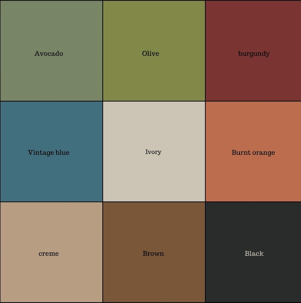 (Our colour chart is reflective of all the studio colours we generally offer. Only the colours displayed in the drop down menu are available for each style.)